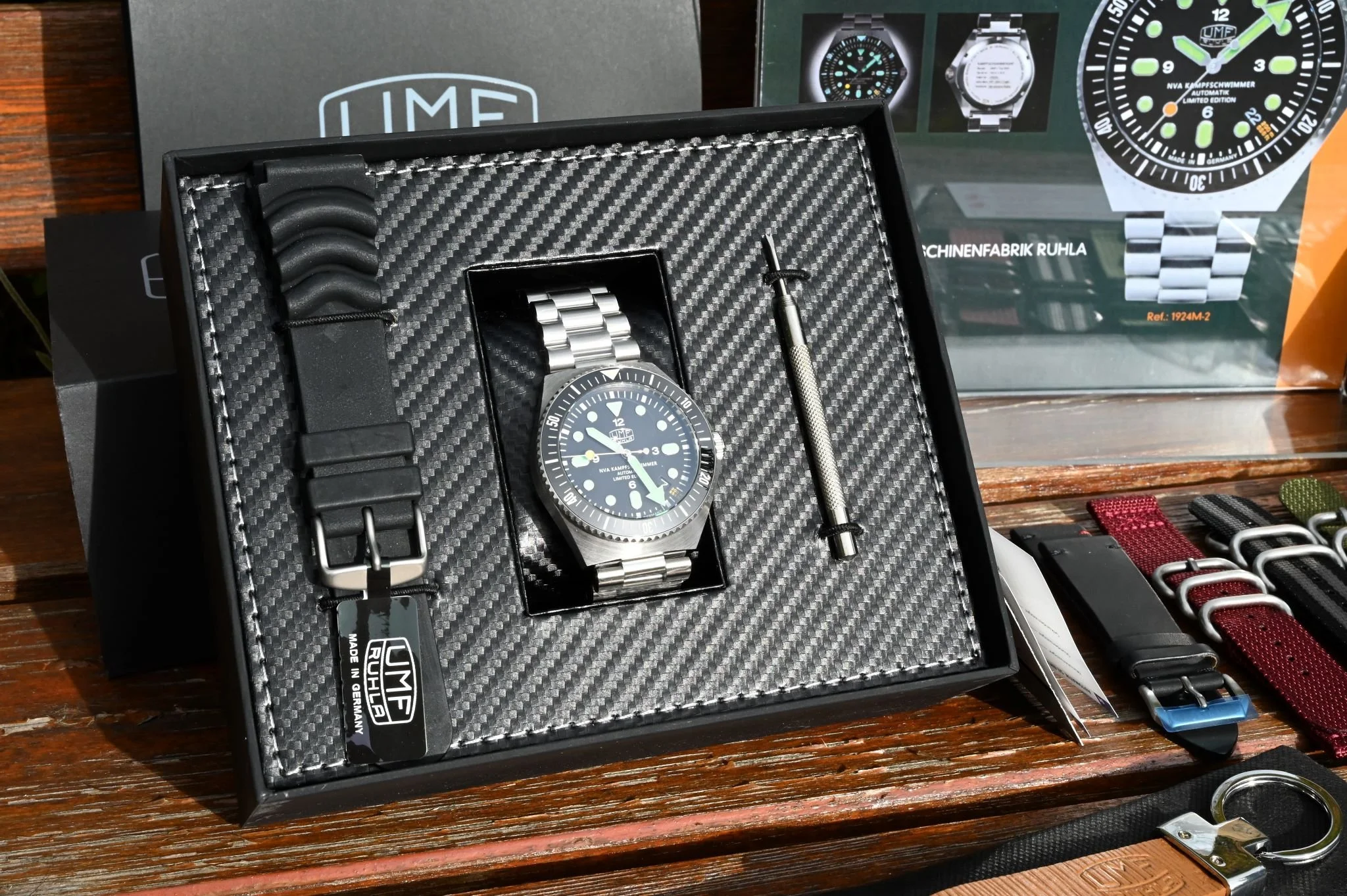 + die besonder originale Uhren-Box der 1000 m (100ATM) UMF-Ruhla